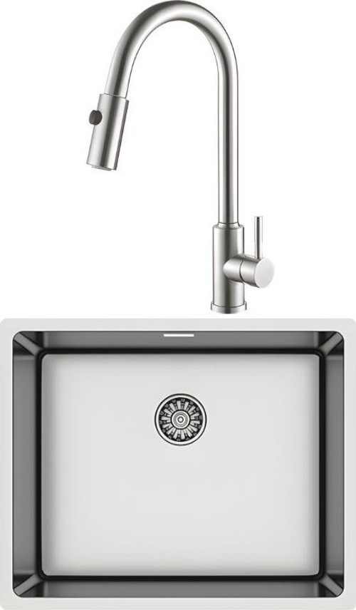 Hafele Novara05 Paslanmaz Çelik Eviye + Pablo Pull Paslanmaz Çelik Kuğu Spiralli Mutfak Bataryası Seti