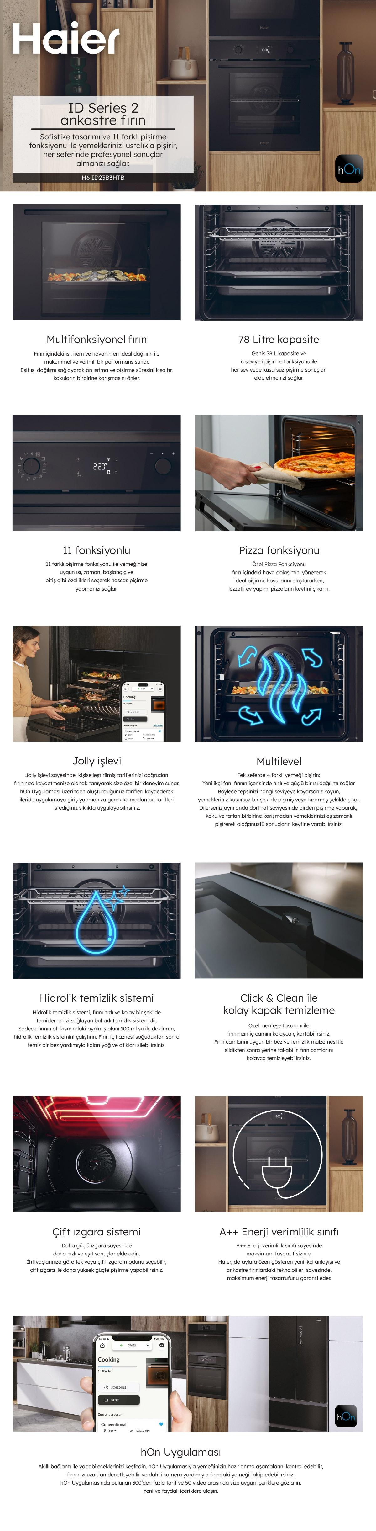 Haier H6 ID25G3HTB Wi-Fi + Bluetooth Bağlantılı Ankastre Fırın