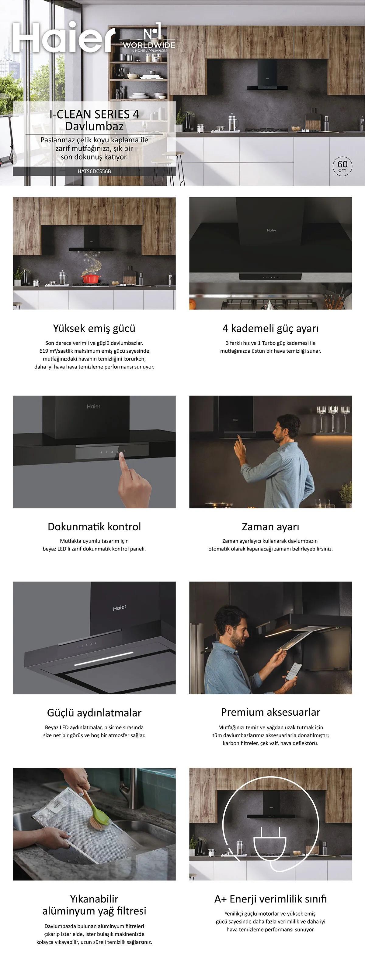 Haier HATS6DCS56B Siyah Duvar Tipi Davlumbaz