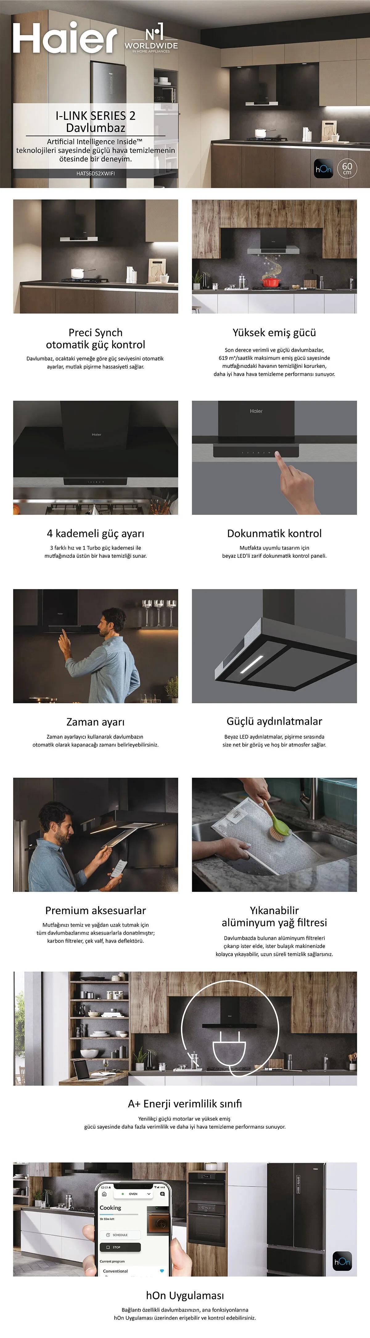 Haier HATS6DS2XWIFI Siyah Duvar Tipi Davlumbaz
