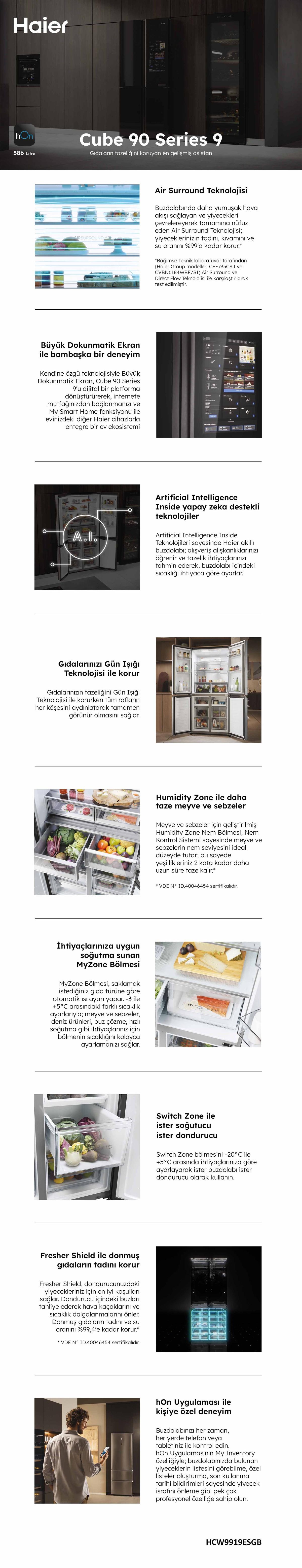 Haier HCW9919ESGB Gardırop Tipi No Frost Buzdolabı