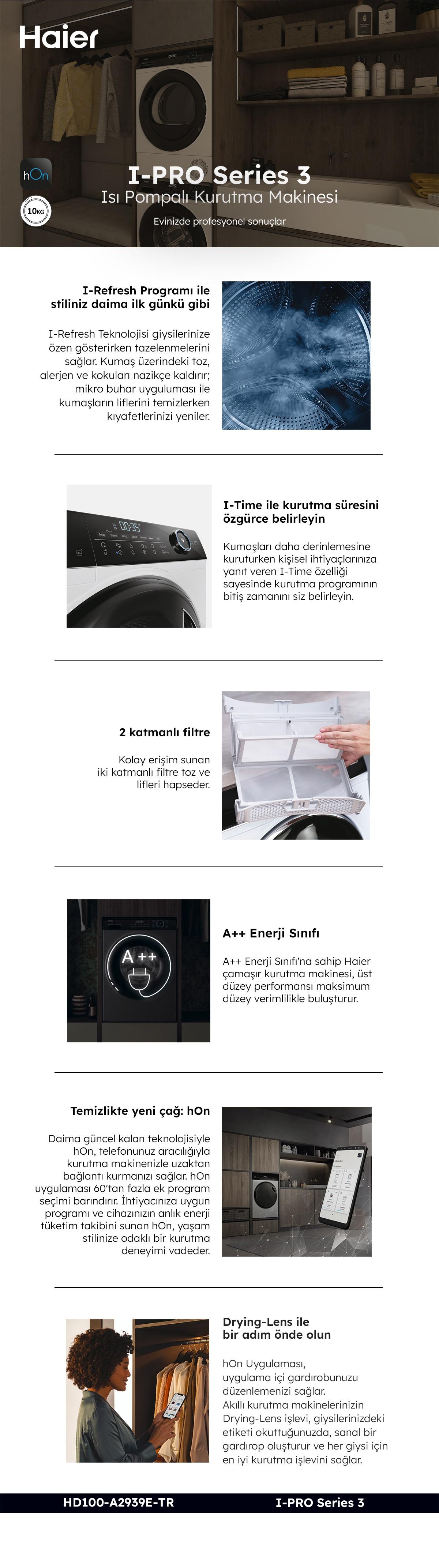Haier HD100-A2939E-TR Wi-Fi 10 kg Çamaşır Kurutma Makinesi