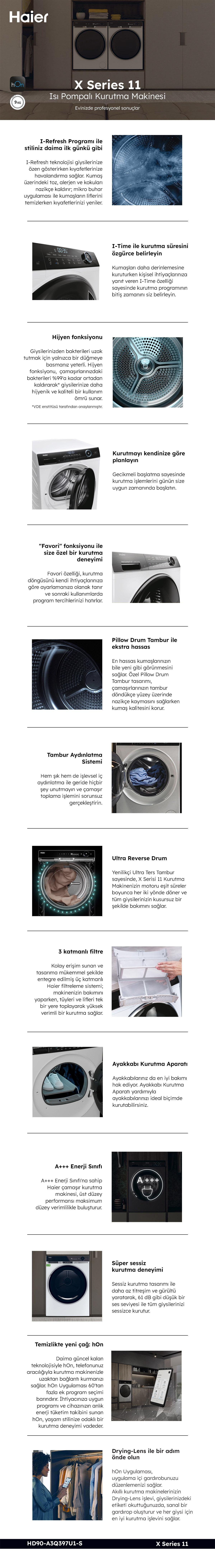 Haier HD90-A3Q397U1 9 kg Çamaşır Kurutma Makinesi