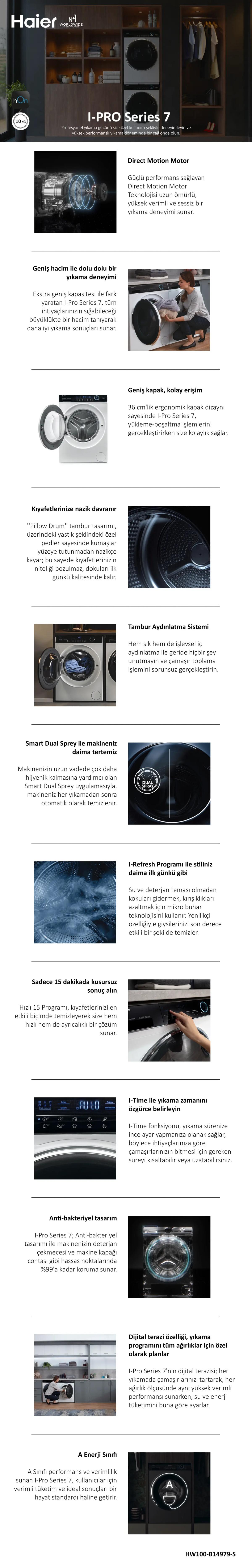 Haier HW100-B14979 10 kg 1400 Devir Çamaşır Makinesi