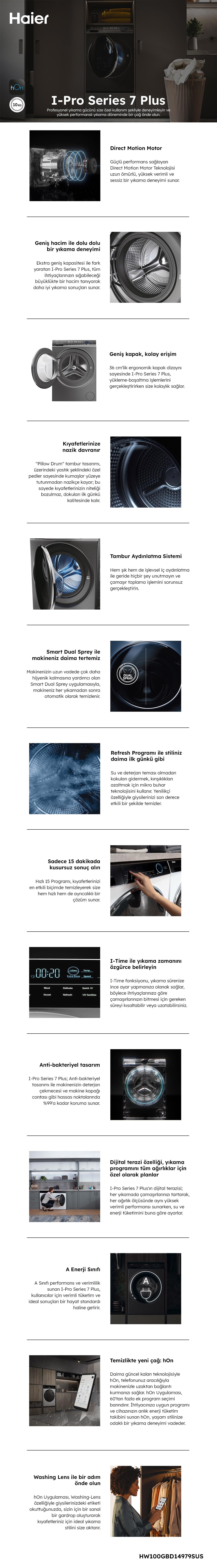 Haier HW100GBD14979SUS 10 kg Wi-Fi + Bluetooth Bağlantılı 1400 Devir Çamaşır Makinesi - Antrasit