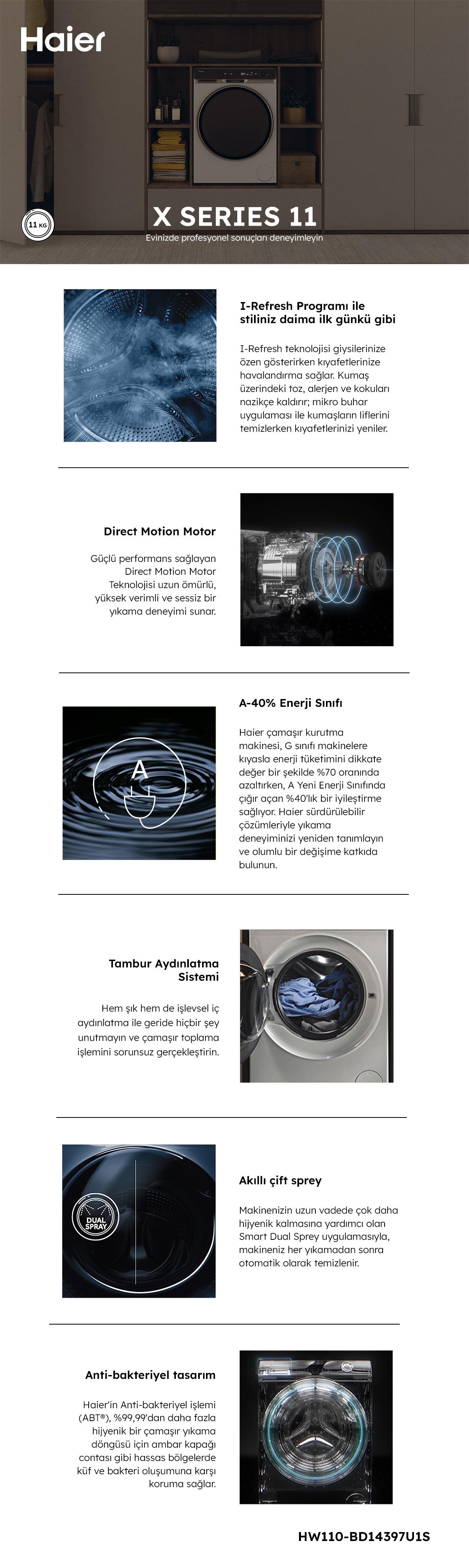 Haier X Series 11 HW110-BD14397U1 11 kg 1400 Devir Çamaşır Makinesi