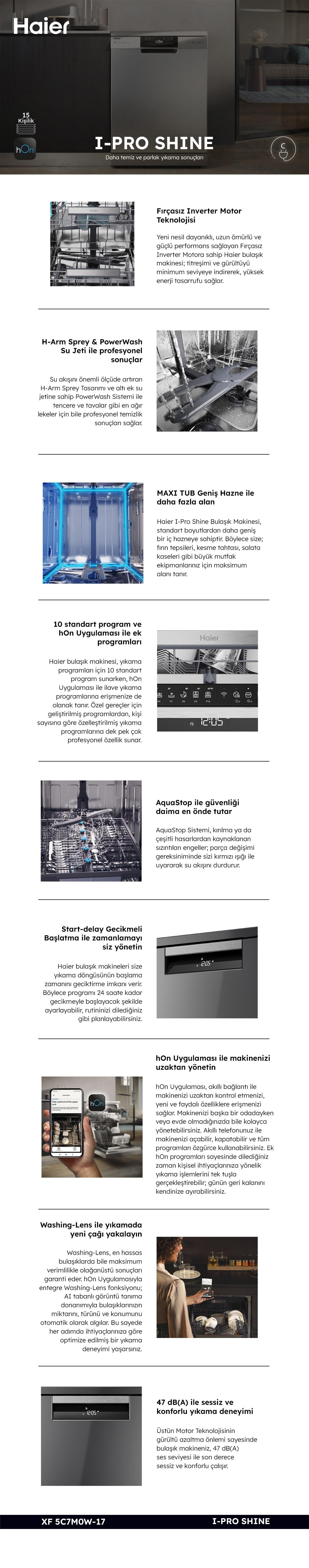 Haier XF 5C7M0W-17 Wi-Fi 8 Programlı Bulaşık Makinesi
