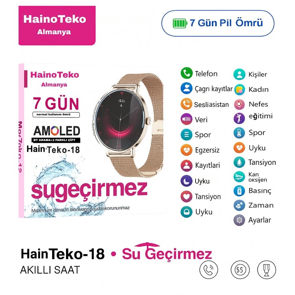 Haino Teko Amoled Ekran Super Slim Tasarım WaterProof 3 Kordonlu Akıllı Saat Gold Rose Teko18