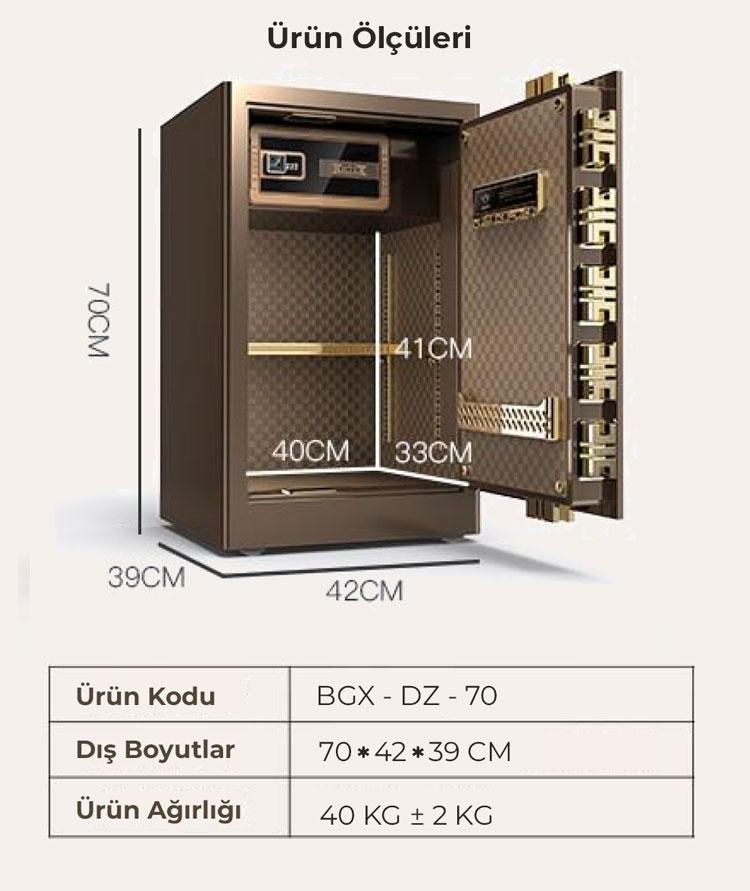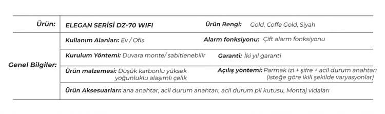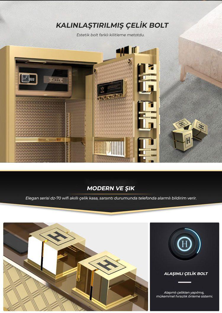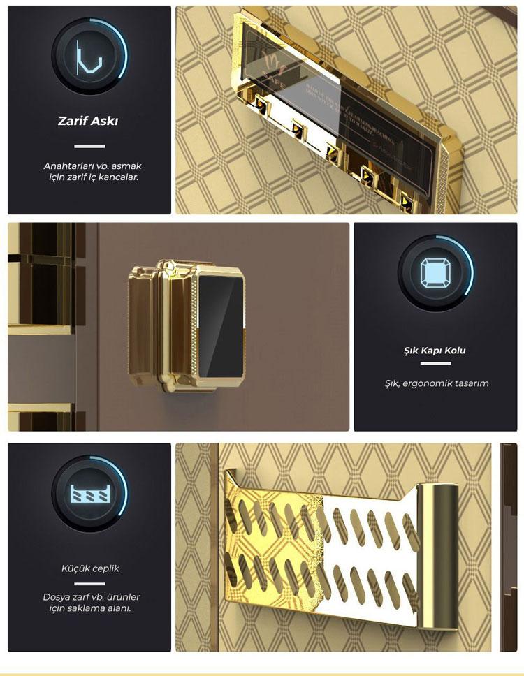 Hakan Para Kasalari Elegan serisi BGX-DZ-70 modeli akıllı kasa olması sebebi ile aynı anda telefonda da alarm çaldırır.