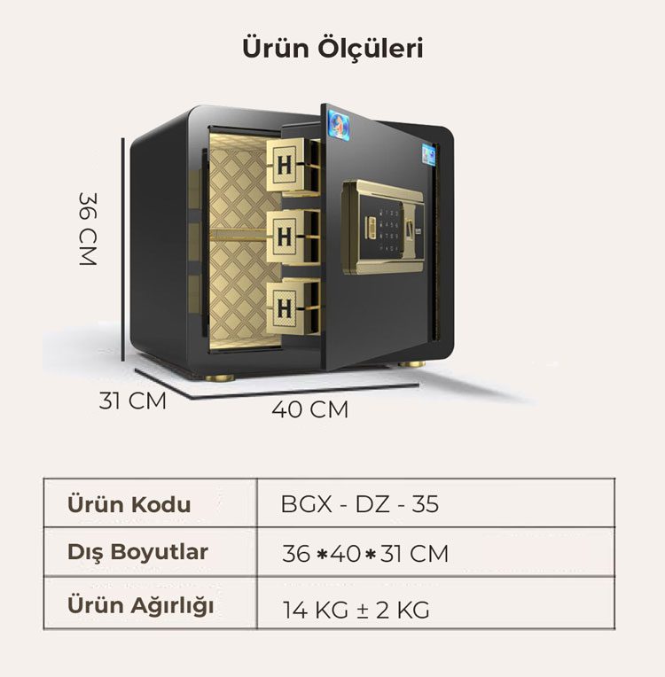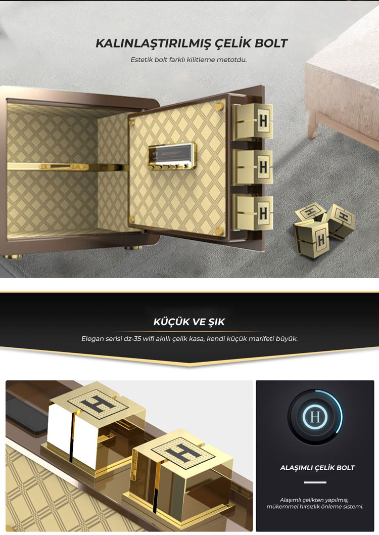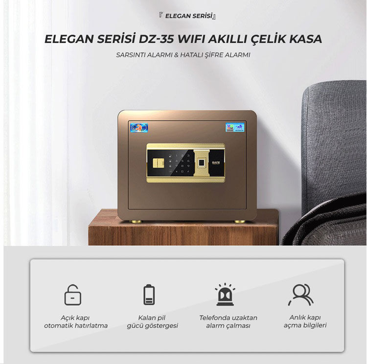 Hakan Para Kasalari Elegan Serisi BGX-DZ-35 modeli akıllı kasa olması sebebi ile aynı anda telefonda da alarm çaldırır.