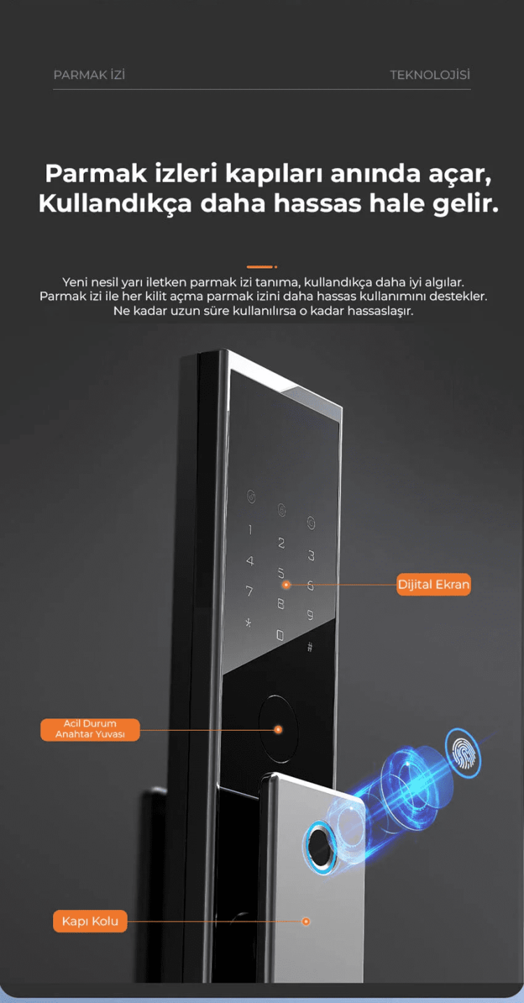 30 farklı kullanıcı için parmak izi ekleme özelliği vardır.