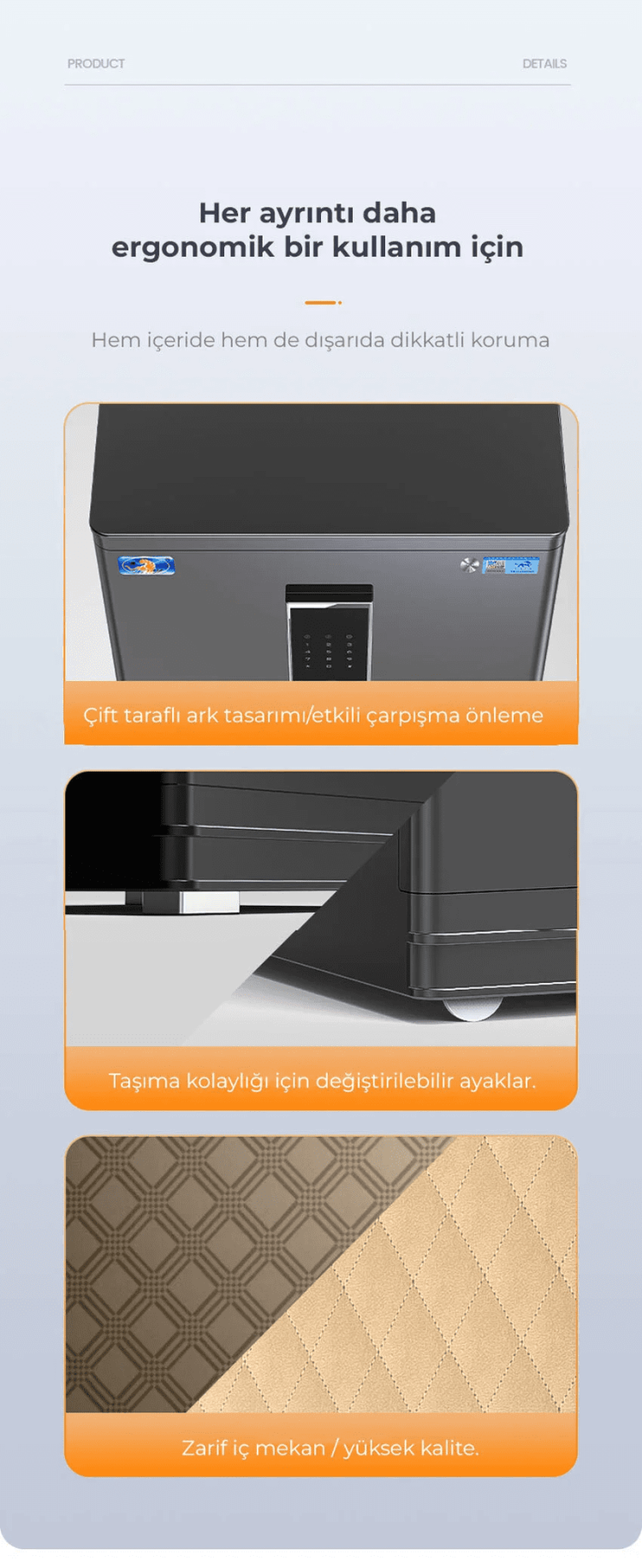 Dijital şifre ve parmak izi sayesinde ekstra güvenlik sağlamaktadır.