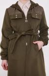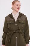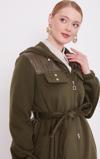 Haki Belden Bağlamalı Kaipşonlu Kaşe Kaban