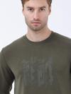 Haki Bisiklet Yaka Baskılı Sweatshırt
