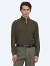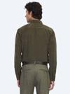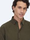 Kip Haki Çizgili Regular Fit Dokuma Kadife Casual %100 Pamuk Gömlek