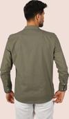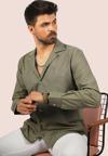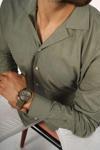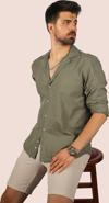 Haki Keten Apaj Yaka Oversize Erkek Gömlek