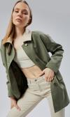 Lela Oversize Fit Kruvaze Yaka Düğmeli Kemerli Uzun Bayan Trençkot 6839476 HAKİ - Image 1