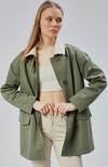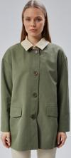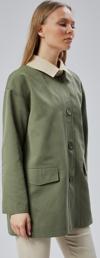 Lela Pamuk Karışımlı Oversize Ceket Yaka Düğmeli Kısa Bayan Trençkot 6839627 VİZON - Image 1