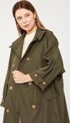 Levidor Yeşil-Bej Kapüşonlu Kolları İşlemeli Trençkot