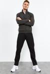 Haki - Siyah Dik Yaka Fermuarlı Standart Kalıp Klasik Paça Erkek Eşofman Takımı - 85152