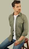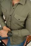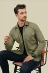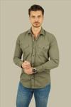 Haki Slimfit Gerçek Kot Erkek Gömlek