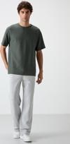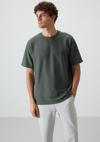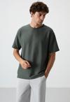 Air Jones Haki Waffle İnterlok Yüzeyi Dokulu Oversize Fit Basic Erkek T-Shirt - 88379