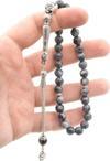 Spektrolit taşı tesbihimizde gümüş kaplama malzeme kullanılmıştır.