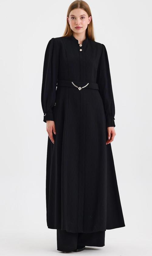 Hakim Yaka Aksesuar Detaylı Siyah Pardesü 13583 Özellikleri