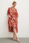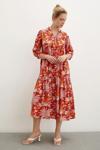 Never More Hakim Yaka Desenli Maxi Elbise Oranj