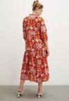 Hakim Yaka Desenli Maxi Elbise Oranj
