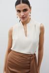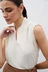 Dik yaka, kolsuz, kalça altı boy, salaş bluz.