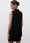 Dik yaka, kolsuz, kalça altı boy, salaş bluz.