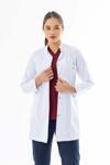 Hakim Yaka Orta Boy Kadın Doktor Önlüğü Alpaka Kumaş Beyaz (BKO002)