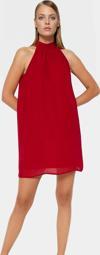 Bu kırmızı mini elbise, yaz aylarının vazgeçilmez parçası olmaya aday! Halter yakası ve kolsuz tasarımıyla sıcak havalarda serin kalmanızı sağlarken, şıklığıyla da göz kamaştırıyor. Nefes alabilen ve hafif şifon dokuma kumaştan üretilen elbise, gün boyu konforlu bir kullanım sunuyor. Astarlı yapısı ise ekstra rahatlık katıyor. Düz tasarımı ve shift kalıbı ile her vücut tipine uyum sağlayan bu elbise, zamansız bir şıklığı temsil ediyor. Kolayca kombinlenebilir, farklı aksesuarlarla kişiselleştirilebilir ve her ortamda göz alıcı bir görünüm sunar.