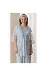 Rahatlık ve şıklığı bir arada sunan mavi üçlü lohusa seti, yeni anne adaylarının hamilelik döneminde ve sonrasında konforunu düşünerek tasarlanmıştır.