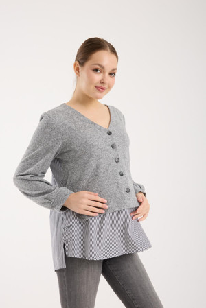 B089-V Yaka Düğmeli Minnoş Triko Kombin Hamile Bluz