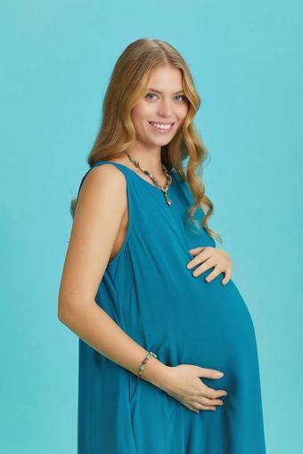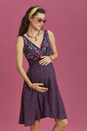 4562-Lyocell Emzirme Detaylı Hamile Midi Boy Elbise