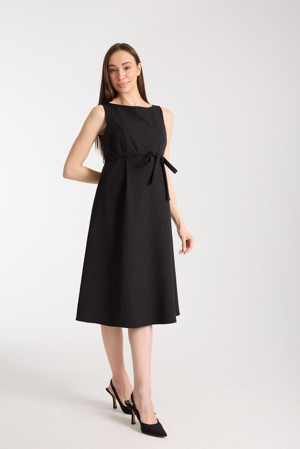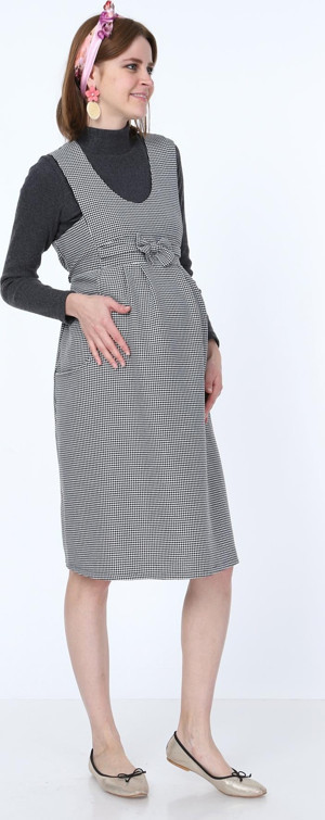 4032-Ofis Hamile Giyim Kumaş Midi Jile Elbise