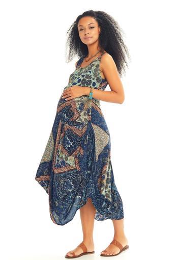4560-Lyocell Askılı Hamile Bahçıvan Midi Boy Elbise