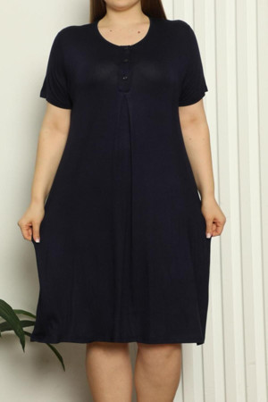 Lacivert Hamile Tunik Gecelik Kısa Kollu Likralı Büyük Beden Geniş Beden Aralığı