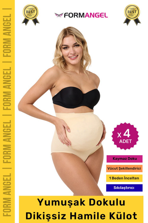 Form Angel #HamileKülot Yumuşak Dokulu Yüksek Bel Esnek Günlük Rahat Dikişsiz Lohusa Hamile Külot - 4 Adet