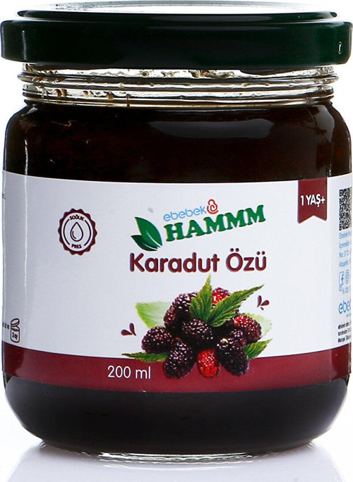 "Hammm Karadut Özü, yüksek oranda C vitamini ve lif içerir. İçinde bulunan A vitamini saysinde göz sağlığını korumaya yardımcı olur. Sindirim sistemi sorunlarına iyi gelir. Güçlü bir demir kaynağıdır. Öksürük ve boğaz ağrısı şikayetlerini en aza indirir. Güçlü bir demir kaynağıdır. Hammm bir ebebek markasıdır. Yaş Aralığı: +1 Yaş"