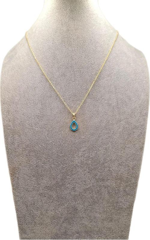 Uzunluk yaklaşık 50 cm papağan kancalı altın renk mavi damla model kolye