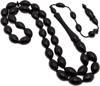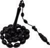 Tane Ölçüsü: 6,5 x 10,5 mm Arpa Kesim Sistem Püsküllü Siyah Renk Toz Kehribar Tesbih