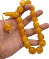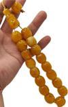 Tane Ölçüsü: 16x16 mm Fıçı Kesim Efe Maskot Model Şak Şak Özel Model Sarı Hareli Desenli Renk Toz Kehribar Tesbih