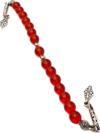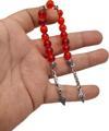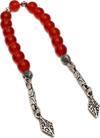 Tane Ölçüsü: 8 mm Küre Kesim Gümüş Renk Kombinli Doğal Kırmızı Cam 15 Taneli Zaza Tesbih