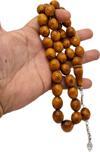 Tane Ölçüsü: 13 x 15 mm Fıçı Kesim Açık Kahverengi Büyük Boy Toz Kehribar Tesbih