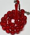 Toz kehribar tesbih kırmızı renk beyzi kesim