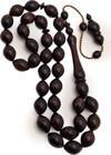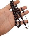 Tane Ölçüsü: 8,5 x 12 mm Beyzi Kesim Sistemli Özel Lüks Model Koyu Kahverengi Toz Kehribar Tesbih