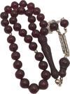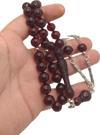 Tane Ölçüsü: 10 x 10 mm Uçlu Küre Kesim İmame İşlemeli Özel Püsküllü Koyu Kırmızı Toz Kehribar Tesbih püskül değişiklik gösterebilir